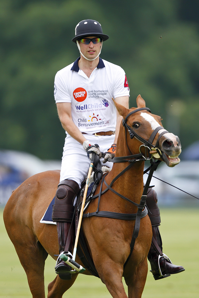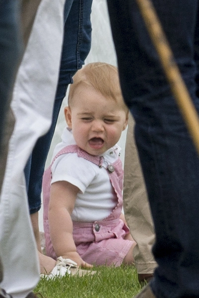 Маленький принц чуть не отвлек внимание зрителей от игры своего отца: он ползал по траве и все время хотел взять клюшку для игры в поло.