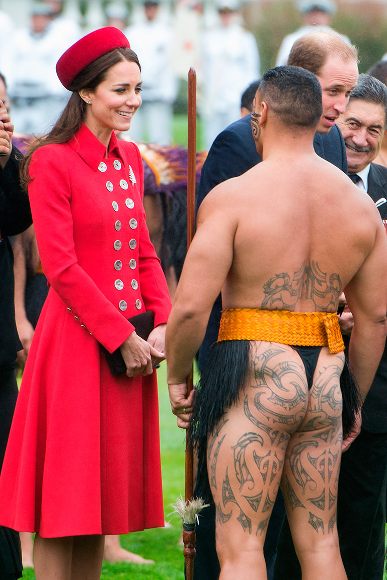 В рамках поездки молодая королевская семья должна посетить виноградник и стадион для рэгби. Герцог и герцогиня Кембриджская уже встретились с представителями одного из местных племен рядом со зданием правительства, потеревшись носами с их главными сановниками в честь знакомства.