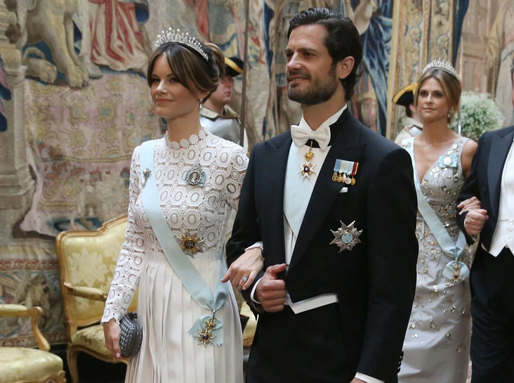 Платье с глубоким разрезом не подходит для протокольных мероприятий, так что в случае принцессы Софии дизайн модели был слегка откорректирован. И в таком наряде, дополненном регалиями в виде ордена и тиары герцогиня Вермландская выглядела поистине по-королевски (читайте также: 10 примеров, когда королевы и принцессы надели одно и то же).