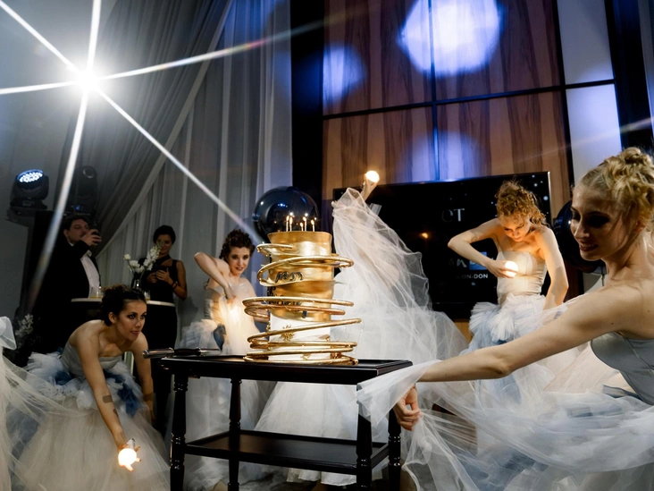 В этот вечер было много запоминающихся моментов: звездные декорации двухэтажного президентского люкса, фуршет в стиле донских традиций на террасе с видом на Дон в сопровождении коктейлей из местных фруктов и ягод от шеф-бармена, невероятные фотозоны в виде полянки из живых цветов, много танцев и живой музыки.
