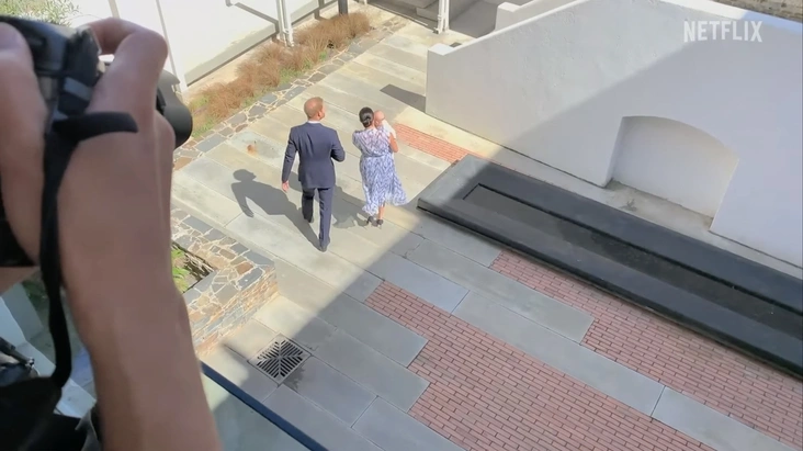 Еще одной фотографией, вызвавшей споры, была фотография Гарри и Меган, сделанная на балконе. Королевский корреспондент Роберт Джобсон написал в Твиттере: «Эта фотография, использованная @Netflix и Гарри и Меган, чтобы предположить вмешательство прессы, является полной пародией. Она была сделана аккредитованным пулом в резиденции архиепископа Туту в Кейптауне. На аккредитованной встрече было всего 3 человека. Гарри и Меган согласились с позицией. Я был там».