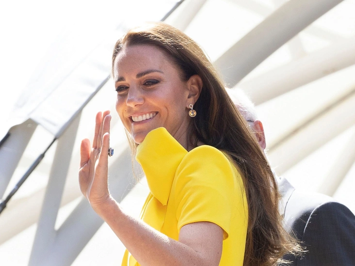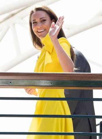 Для эффектного выхода Кейт выбрала лимонный цвет — один из ее любимых, который она нередко примеряет для теннисных турниров. Герцогиня выбрала желтое платье от от Roksanda с эффектным бантом спереди. Поклонникам и модным экспертам этот наряд хорошо знаем: в этом же платье герцогиня появилась в одном из дней своего Карибского тура, который считают самым провальным в истории путешествий герцогов Кембриджских.