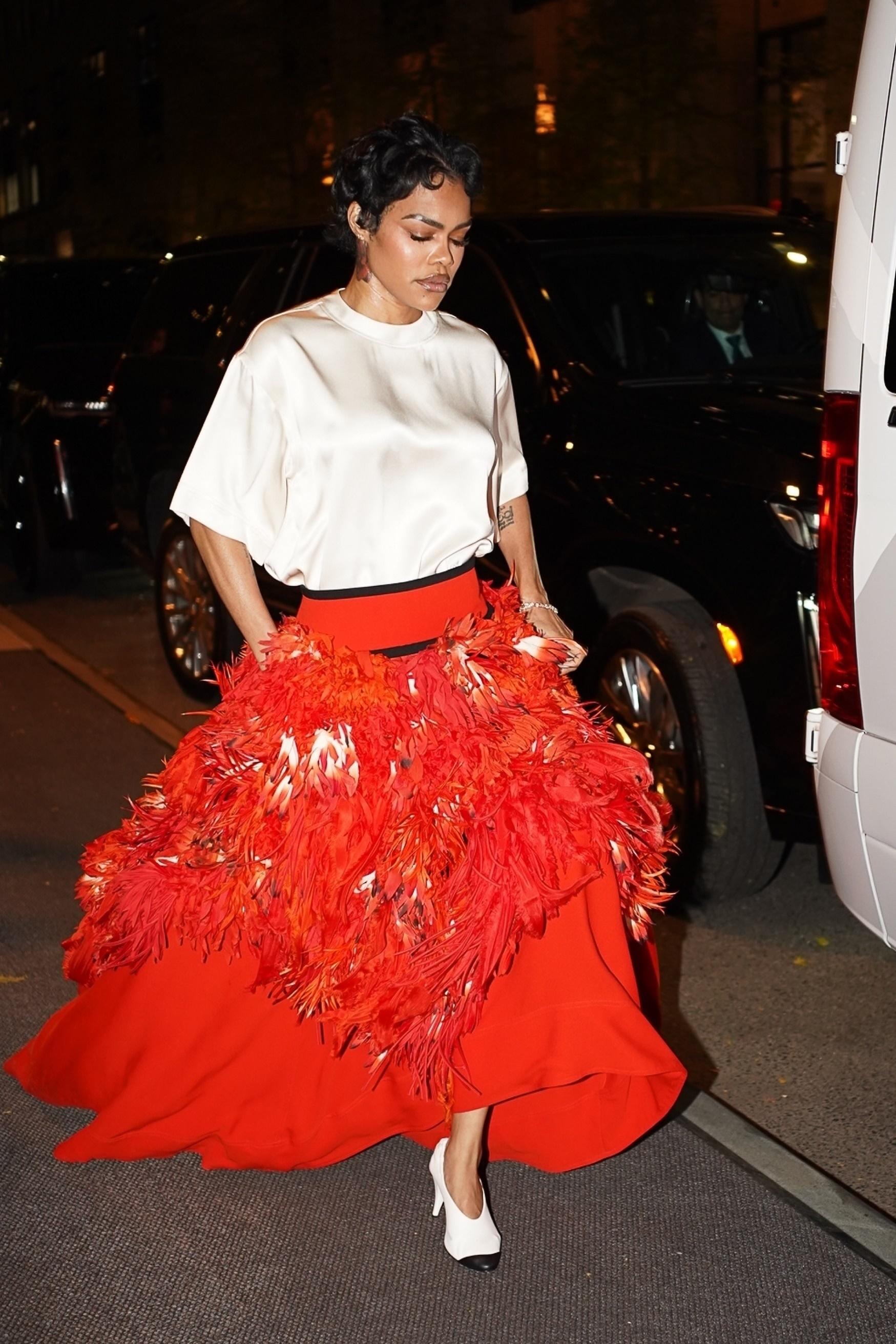 Из знаменитых гостей на красной дорожке блистали Аманда Сайфред, Кристен Стюарт, Тесса Томпсон, Кейт Хадсон, Джулия Робертс, Хью Джекман, Дженнифер Лоуренс, A$AP Rocky, Рианна, Наоми Уоттс, Эль Фаннинг, Зой Дойч, Тейана Тейлор, Чейз Инфинити и многие другие. Все — в образах из коллекций именитых дизайнеров.