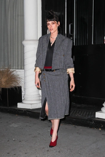 Также в поддержку Матье Блази в образах из его дебютной коллекции вышли Кристен Стюарт, Райли Кио и Тейана Тейлор. На фотоколле отметились костюм с укороченным жакетом, алая юбка — одна из самых виральных вещей шоу — и красное платье с опущенной линией талии (читайте также: Первая коллекция Матье Блази для Chanel — мода, которой всем так не хватало).