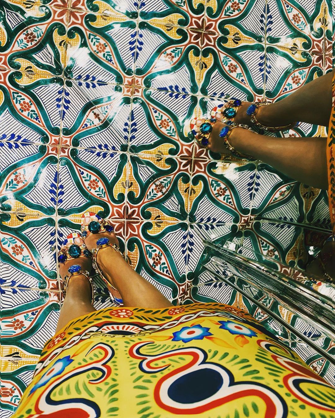 На большинстве фото племянница Уэльской демонстрирует свой гардероб от Dolce & Gabbana — платья, купальники и туники с крупными растительными принтами. Китти уже не первый год является послом этого бренда. К слову, именно Dolce & Gabbana создали шесть свадебных платьев леди Спенсер (читайте также: Королевский размах: шесть свадебных платьев леди Китти Спенсер).