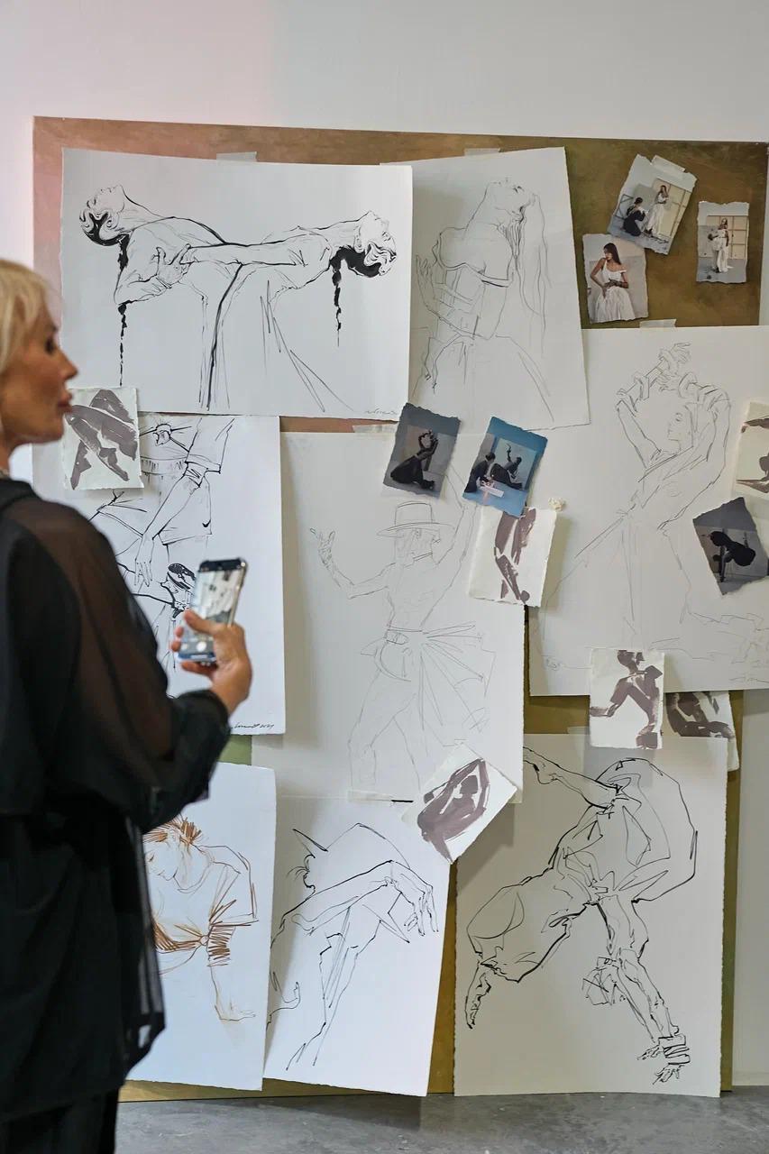 Завершился фестиваль блистательным арт-перформансом. Хореографический дуэт представил гостям балетную постановку, а художница и фэшн-иллюстратор Алена Лавдовская проследила за танцорами и воссоздала их движения в своих рисунках.