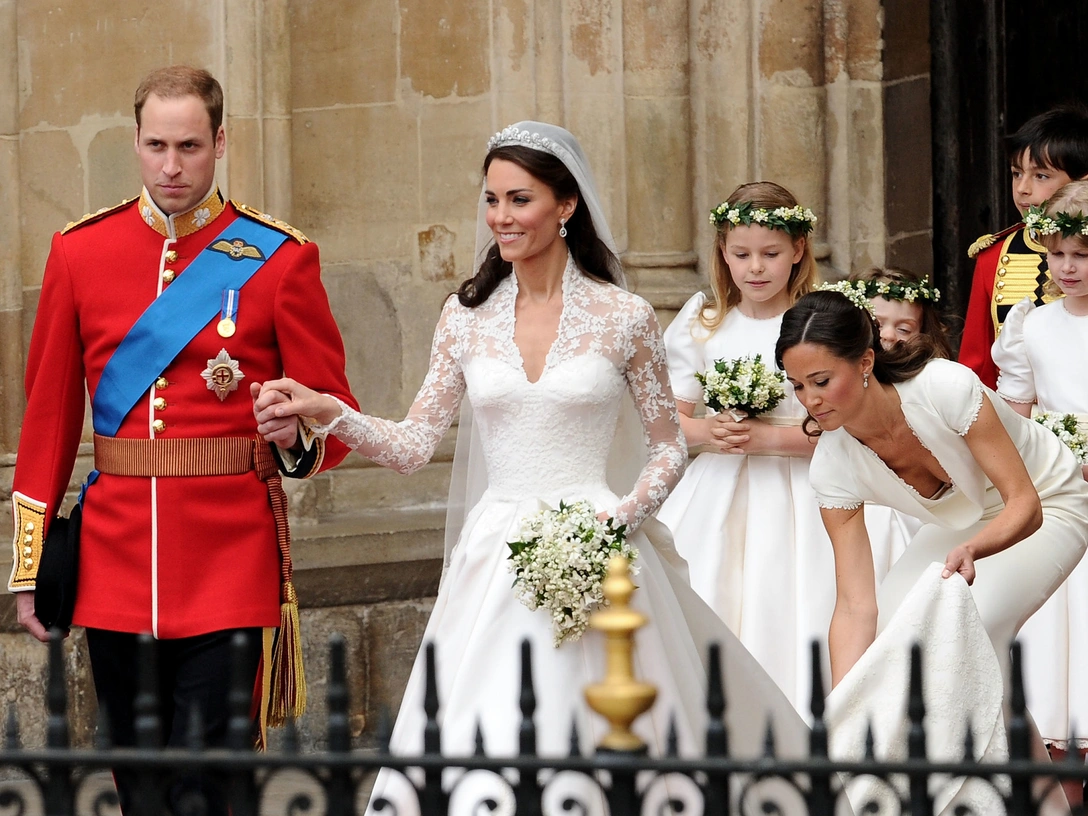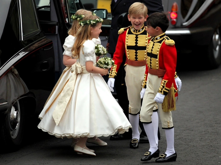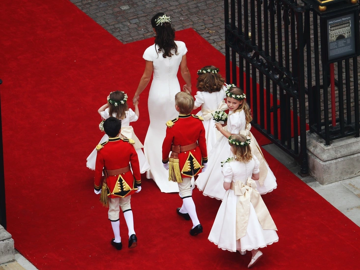 На маленьких цветочницах были белые платья с кремовыми поясами и нежные цветочные короны. Любопытно, что венки были составлены из цветов плюща и ландышей. Как сообщается, дизайн цветочных корон был смоделирован по образцу свадебного головного убора матери невесты, Кэрол, которая вышла замуж за Майкла Миддлтона 21 июня 1980 года.