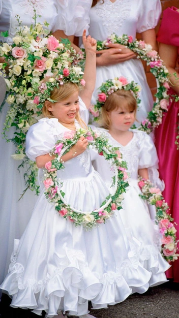 Маленькие Йоркские выглядели настоящими феями на свадьбе их няни, Элисон Уордли. Пышные платья, венки на голове и в руках — принцессы почти затмили невесту!