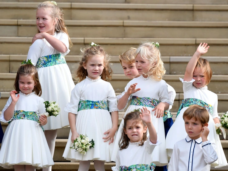 Дочь Зары и Майка Тиндалл, Миа, а также дочки Питера и Отэм Филлипс — Саванна и Айла были юными звездочками торжества принцессы Евгении и Джека Бруксбэнка. Но той же свадьбе роль цветочниц выполняли и принцесса Шарлотта, и дочь Робби Уильямса, Теодора.