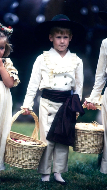 Гарри был пажом на свадьбе своего дяди по материнской линии Чарльза Спенсера и модели Виктории Эйткен. Подпоясанный бордовым кушаком, в широкополой шляпе и с корзинкой в руках, шестилетний принц выглядел очень забавно и мило.