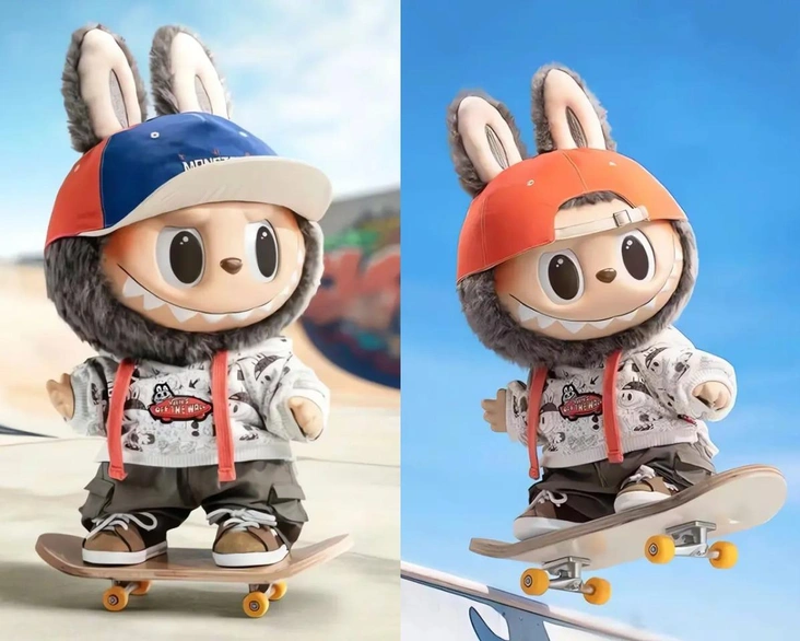 Самой дорогой фигуркой стала серо-коричневая кукла, которая щеголяет в уличной одежде Vans — включая кроссовки от популярного скейтерского бренда, толстовку Vans и сине-оранжевую шапку с надписью «The Monsters». Это лимитированная Labubu — совместный проект между PopMart и культовым брендом обуви Vans. Коллаб выпущен ограниченным тиражом — около 3 275 единиц фигурок. Этот маленький скейтер-монстр впервые появился в 2023 году, а изначальная розничная цена составляла 85 долларов (примерно 6 700 рублей), то есть стоимость перепродажи была в 125 раз выше.