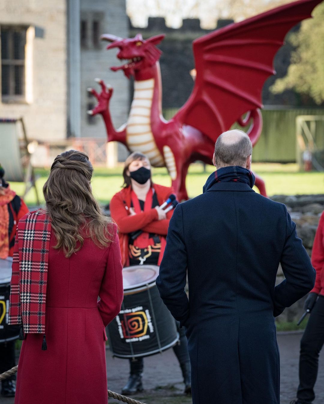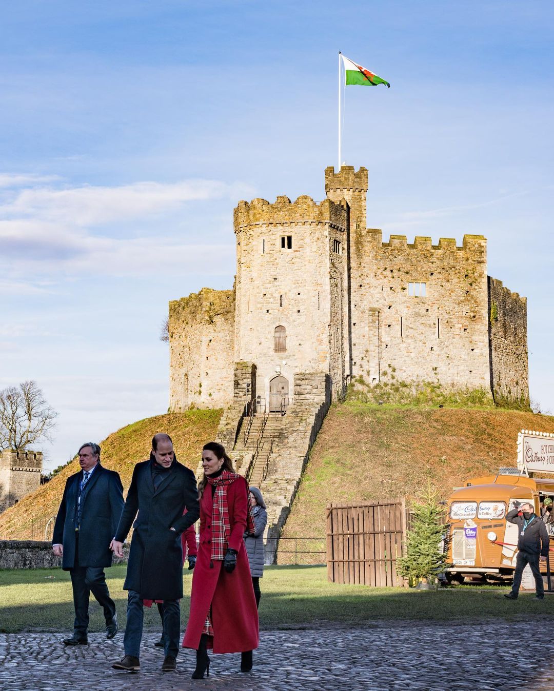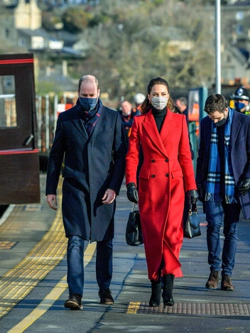 Необычный вид транспорта позволил Кейт и Уильяму совершить путешествие с соблюдением правил социального дистанцирования. Во всех закрытых помещениях супруги появлялись в масках, снимая их только на открытом воздухе. Герцогиня Кембриджская взяла в путешествие целых четыре пальто из своей богатой коллекции, и каждое из них неизменно дополнял клетчатый шарф. Уильям же остановился на одной классической костюмной модели, зато активно менял шарфы.