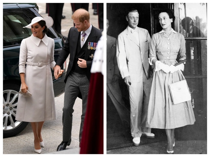 Обозреватели отметили, что за вычетом шляпы и небольшой разницы в форме подола образы Виндзорской и Сассекской практически идентичны. И это вызвало массу обсуждений в прессе. Меган давно сравнивают с Уоллис — еще одной разведенной американкой, из-за которой один из Виндзоров покинул Британию и провел остаток жизни в изгнании. Конечно, принц Гарри не был королем, но его жизнь в чем-то перекликается с судьбой дяди Елизаветы II, о котором на родине долгое время даже не упоминали (читайте также: В изгнании: как принц Гарри повторяет трагическую судьбу Эдуарда VIII). После отречения Эдуарда они с Уоллис переехали во Францию, поженились и стали герцогом и герцогиней Виндзорскими. Бывшеву королю назначили содержание, но запретили появляться на родине, чтобы избежать любых политических рисков.