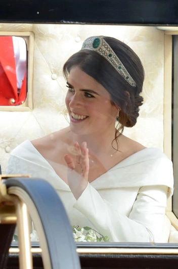 У каждой королевской особы есть любимые аксессуары, и у принцессы Евгении это определенно ободки. Даже для своей свадьбы наследница выбрала тиару Boucheron с изумрудами и бриллиантами, которая напоминала что-то между кокошником и широким ободком.