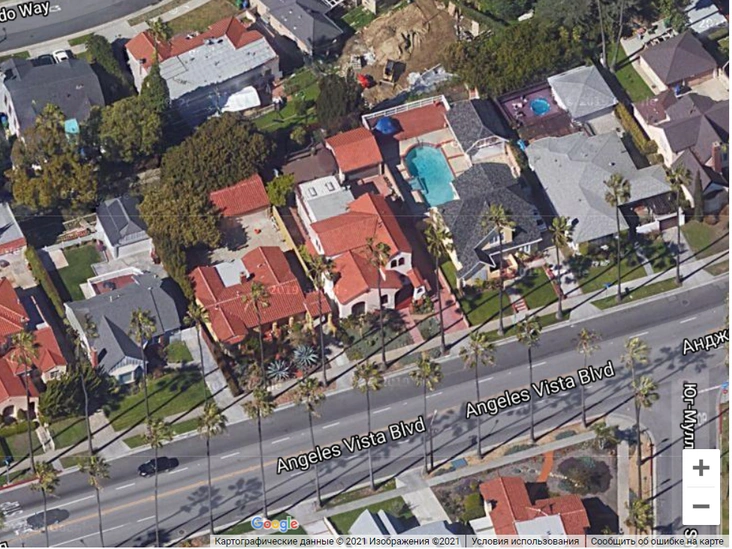 По данным Zillow, в доме площадью в 130 квадратных метров есть две спальни и две ванные комнаты. На Google Maps он также отмечен. На снимке, сделанном сверху, можно разглядеть особенности планировки П-образного строения, дополненного хозяйственным помещением на заднем дворе.
