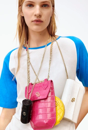 Среди главных направлений – винтажные сумки, миниатюрные модели, геометрия и логомания, а также фактурная выделка под кроко. Последняя и стала основой для новой коллекции Maje. Варианты под кожу аллигатора можно найти во всех самых ярких цветах нового сезона – от нежно-голубого и белого до ярко-желтого и фуксии. Красочные аксессуары не только разнообразят сдержанный гардероб, но и помогут правильно расставить акценты в образах – ваш наряд и так будет выглядеть довольно ярко, поэтому не потребует к себе никаких других аксессуаров, кроме как любимой сумочки.