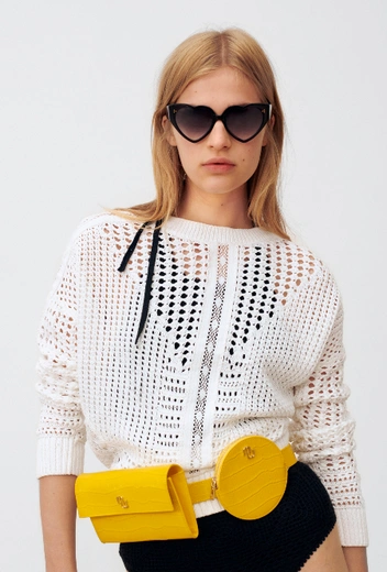 Maje решает идти дальше и экспериментирует не только с фактурами и цветами, но и с формами привычных нам аксессуаров. И делает это с присущим парижским шиком. Например, миниатюрные сумочки теперь представлены в форме пирамиды, напоминая нам об одном из главных символов Парижа – Лувре. Практичная поясная может быть как в виде идеального прямоугольника, так и круглой – выбирайте по настроению. А для упорядочивания содержимого вашей сумки в новой коллекции можно найти миниатюрный кошелек с логотипом.