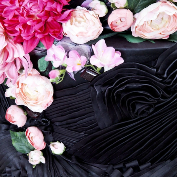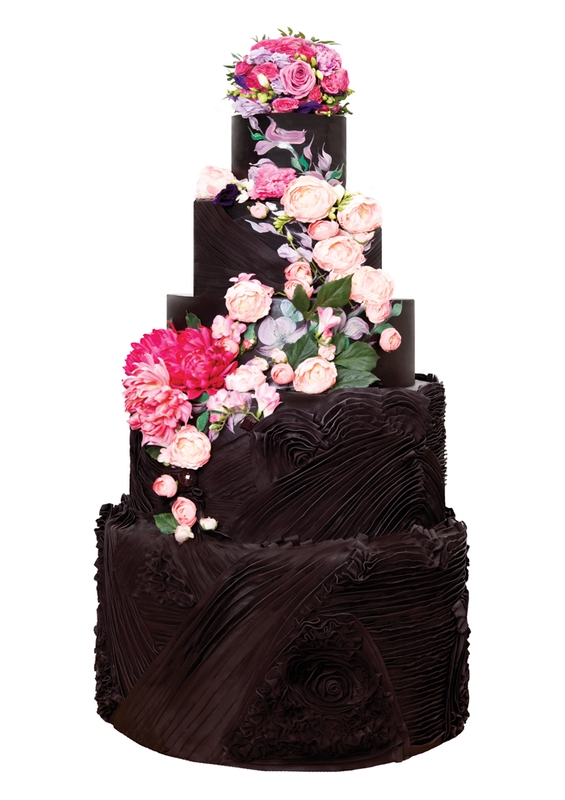 Мастера представили тренд 2017 года - черный шоколадный многоярусные торт, высотой полтора метра, изготовленный из королевской глазури и сахарной пасты, пропитанный нотками цитрусовых ароматов и вкусов, бренди, кофе, мяты вперемешку с лесными ягодками, покрытый сладкими и живыми цветами, а также расписанный вручную художниками кондитерской.