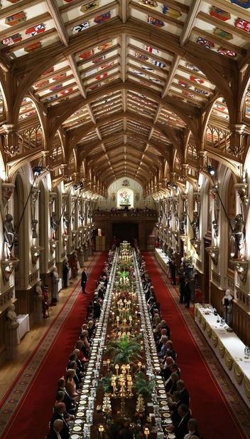 На торжественный ужин в Виндзорском замке было приглашено около 160 гостей. Среди них — принцесса Анна, герцог и герцогиня Глостерские, медиамагнат Руперт Мердок, а также представители бизнеса и политики. Гостей рассаживали за стол длиной более 47 метров, украшенный 139 свечами в серебряных канделябрах и цветочными композициями из садов королевских резиденций.