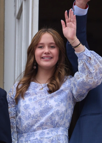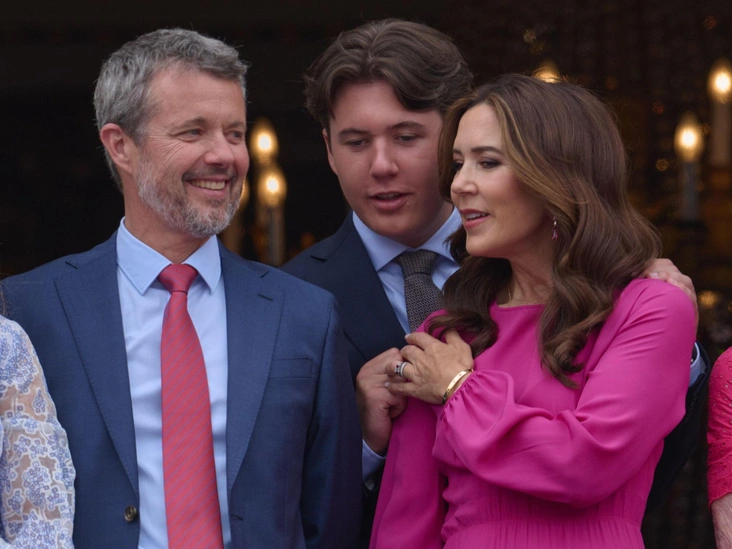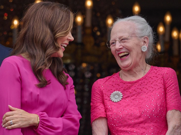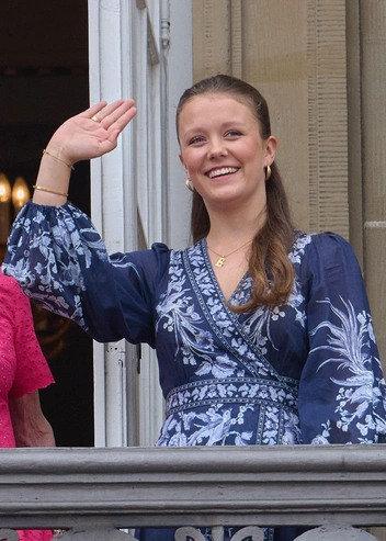 В честь дня рождения монарха датская семья традиционно вышла на балкон дворца Амалиенборг и поразила подданных своими образами. Королева Мэри выбрала платье яркого малинового оттенка от итальянского бренда N°21 и сделала фирменную укладку с крупными локонами. Дочери Фредерика и Мэри предпочли наряды из маминого гардероба — принцесса Изабелла платье Zimmermann, а принцесса Жозефина льняное платье с поясом. На балкон дворца также вышла королева Маргрете II, которая надела ярко-розовое платье с короткими рукавами и бриллиантовую брошь (читайте также: Сокровища датской Короны: самые роскошные тиары королевы Маргрете, от которых захватывает дух).