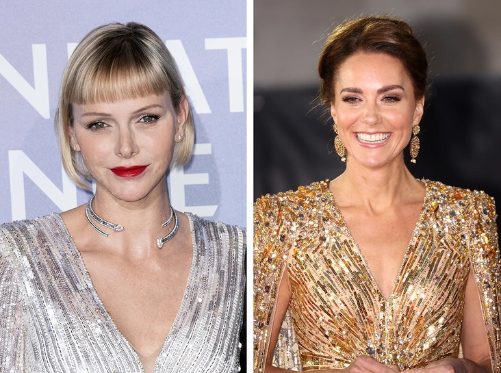Герцогиня Кэтрин и княгиня Монако Шарлен появились на публике в похожих сияющих платьях одного и того же бренда. Рассматриваем образы королевских особ подробнее (читайте также: Красные принцессы: княгиня Шарлен и Меган Маркл в самых рискованных нарядах в истории — кому идет больше?).