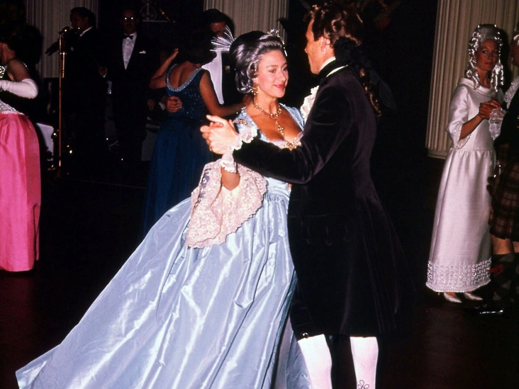На исторических снимках принцесса Маргарет выглядит как достойная соперница Марии-Антуанетты в шелковом платье с кринолиновой юбкой, напудренном парике и массивных украшениях с драгоценными камнями. Лорд Сноудон, также одетый в костюм восемнадцатого века, закружил свою ослепительную супругу в танце, когда их запечатлели фотографы. На следующий день после мероприятия все газеты пестрили снимками гламурной принцессы.