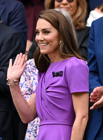 Основное внимание привлекло платье Кейт Миддлтон от Safiyaa за 1 079 фунтов стерлингов (примерно 120 тысяч рублей). Это любимый бренд принцессы, который изготовил платье в пурпурном оттенке специально для нее. Есть несколько версий, почему Кейт предпочла этот цвет. Для начала, фиолетовый — это один из цветов теннисного турнира Уимблдон. Кроме того, фиолетовый издавна считается цветом, который имеют право носить только монархи и старшие члены королевской семьи. Так что этим выходом Кейт могла подчеркнуть свой высокий статус и намерение не сдаваться.