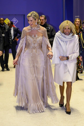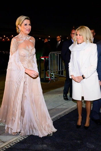 Однако, несмотря на то, что Максима явно выглядела ярче, чем миссис Макрон, между женщинами не чувствовалось напряжение. Брижит Макрон похвалила наряд королевы сразу, как она вышла из машины, и почти весь вечер женщины ходили за руку.