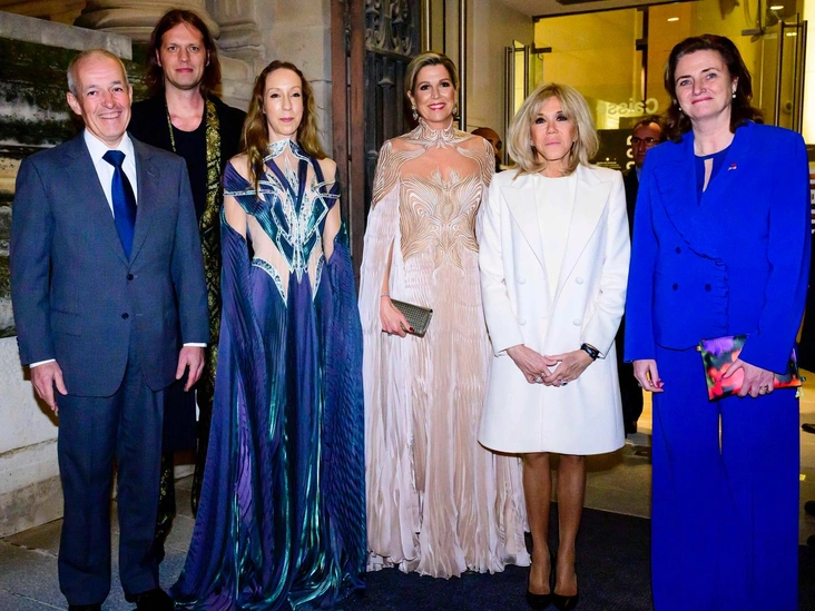 Само мероприятие тоже прошло удачно. Королева Максима открыла выставку официальной речью, поблагодарила художницу за ее вклад в развитие Нидерландов и неординарный стиль. Далее Максима, Айрис Ван Херпен и Брижит Макрон последовали в зал экспонатов, которые поразили королеву.