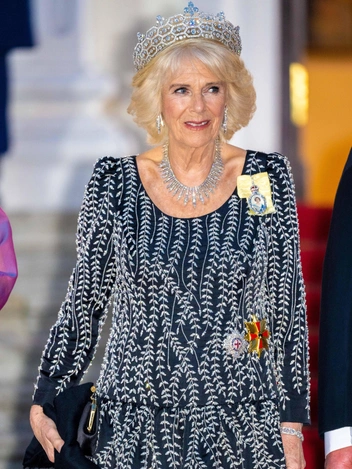 Сопровождавшая Карла III королева-консорт Камилла появилась в тиаре Гревилл и бриллиантовом колье, принадлежавшем Елизавете II, что вызвало восхищение королевских поклонников. Элегантное черное платье Bruce Oldfield с вышивкой в виде веток также собрало массу комлиментов. Любопытно, что Брюс Олдфилд стал любимым дизайнером не только принцессы Дианы, но и королевы Камиллы. Принцесса Уэльская же, напротив, предпочитала отказываться от брендов, которые ассоциировались у нее с соперницей (читайте также: Модное табу: почему после развода Диана перестала носить любимый бренд).