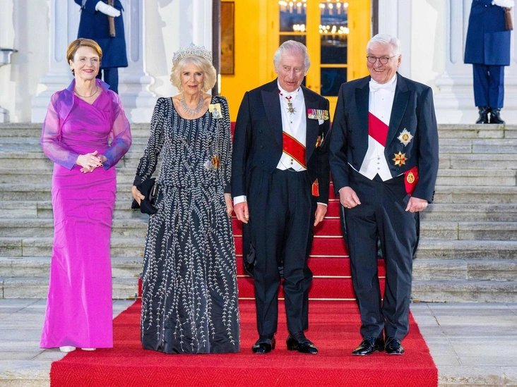 В преддверии собственной коронации Его Величество отправился в зарубежный тур, включающий не только дневные встречи, но и торжественные вечерние мероприятия. На государственном банкете в Германии в среду вечером британская королевская чета появилась во всем блеске. Пара оказалась почетными гостями на торжественном приеме, устроенном президентом Штайнмайером и его женой фрау Бюденбендер в их официальной резиденции во дворце Бельвю.