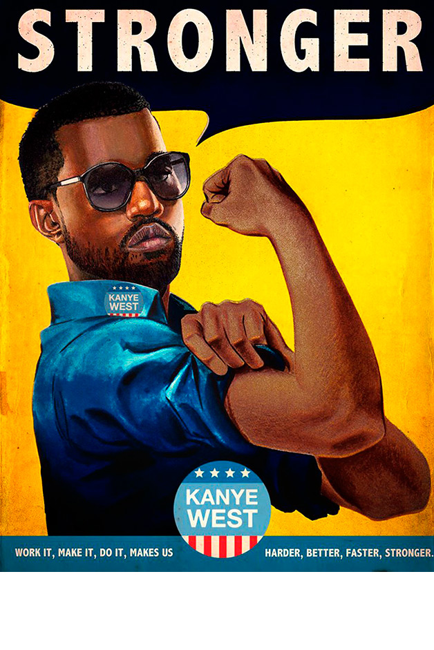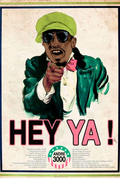 Снуп Дог (Snoop Dogg) разливает по бокалам Gin&Juice, Andre 3000 выступает в роли дядюшки Сэма и призывает людей в свои ряды криком «Hey Ya», а Курт Кобейн ест мороженое, купленное в кафе «Nirvana». На других снимках Эми Уайнхаус (Amy Winehouse) рекламирует кофе «Back to black», а недавно выпустившая клип Бейонсе (Beyonce) призывает девушек править миром.