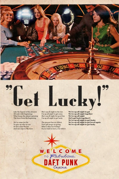 Таким образом в его ретрообъявлениях американская модная икона Рианна (Rihanna) и Дрейк (Drake) рекламируют пудру под названием «Take care», Фаррелл Уильямс улыбается на рекламных плакатах зубной пасты «Happy», а дуэт Daft Punk рядом с девушками 70-х играет в рулетку со слоганом «Get Lucky!».