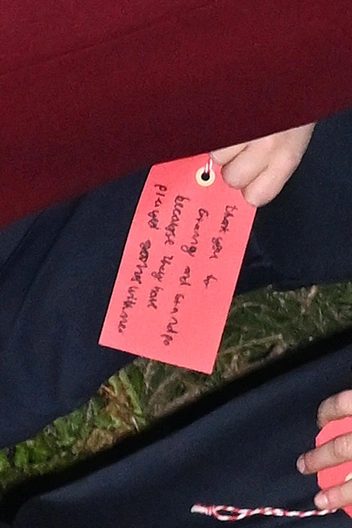 Когда дети и Уильям подходили к зданию храма, фотографы успели запечатлеть невероятно милый момент. Принц Луи держал в руках небольшой красный листок бумаги. На этих карточках юные королевские особы написали то, за что они больше всего благодарны в этом году и должны были повесить на праздничную елку. Бумажка, которая была у Луи, гласила: «Спасибо за бабушку и дедушку, потому что они играли со мной в игры» (читайте также: Мамина копия: самые трогательные совместные фото герцогини Кейт и принца Луи).