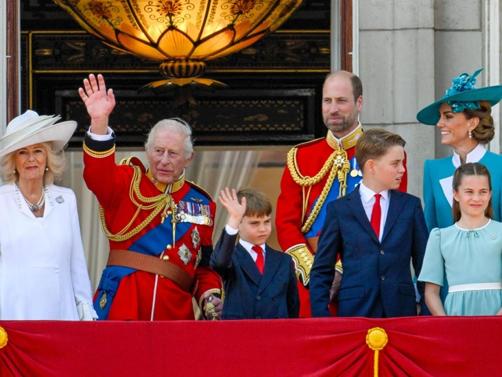 После завершения парада Уильям вместе с Кейт, Джорджем, Шарлоттой и Луи традиционно вышли на балкон Букингемского дворца, чтобы поприветствовать публику и наблюдать за пролетом британской ВВС. К ним присоединились король и королева, а также принцесса Анна. На удивление, озорник принц Луи вел себя довольно спокойно: он смирно стоял и не отвлекался во время государственного гимна. Даже его сестре, принцессе Шарлотте, не пришлось одергивать брата из-за беспокойного поведения.