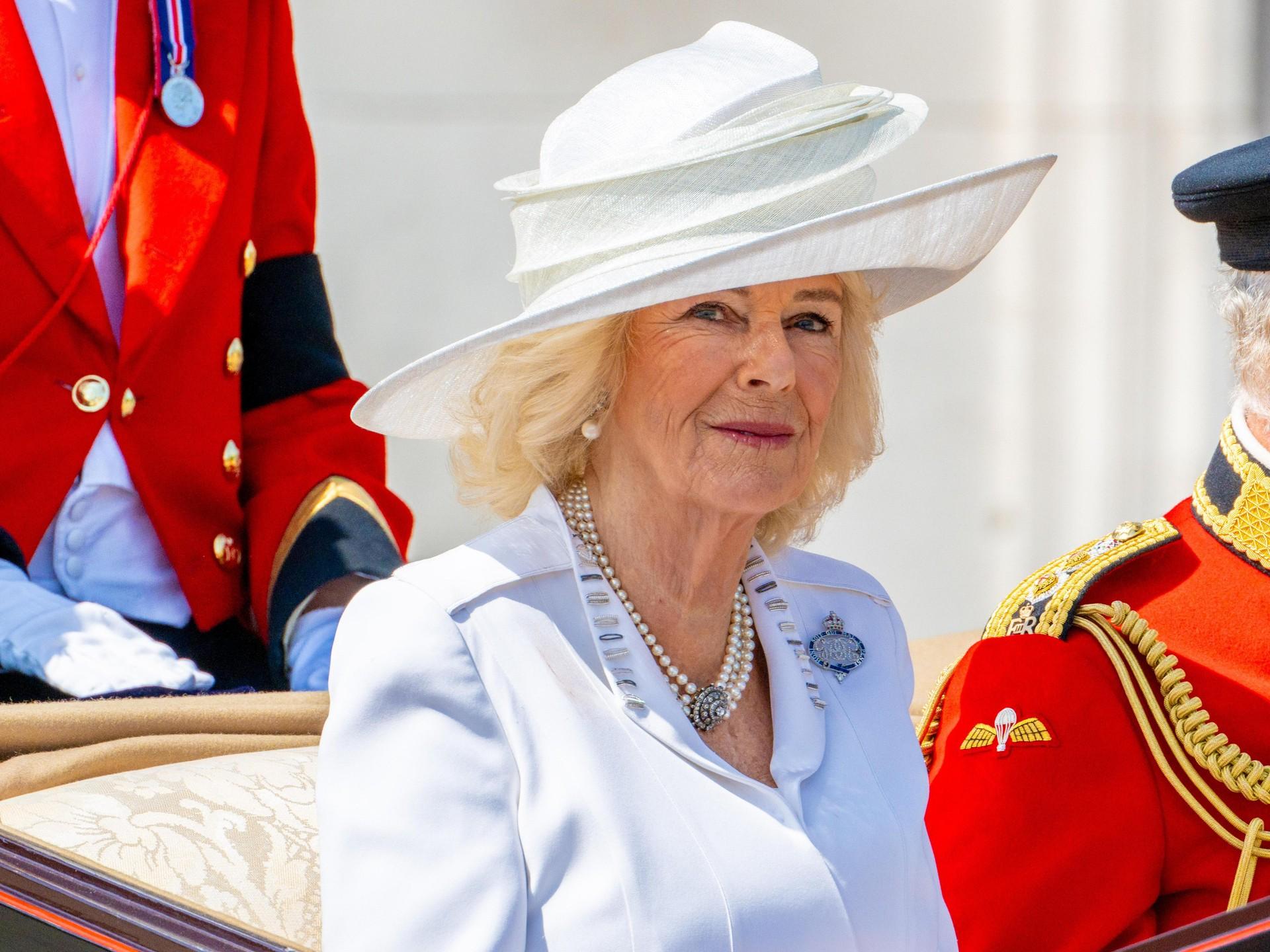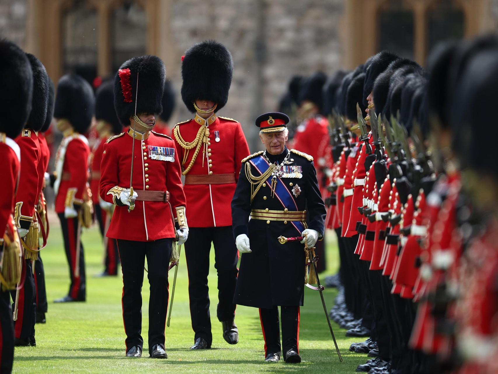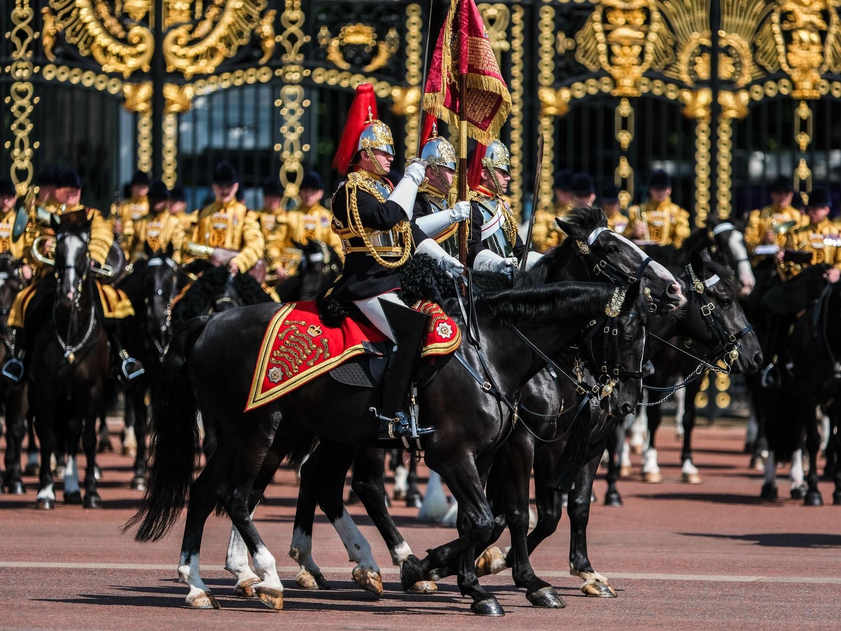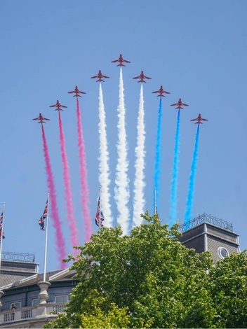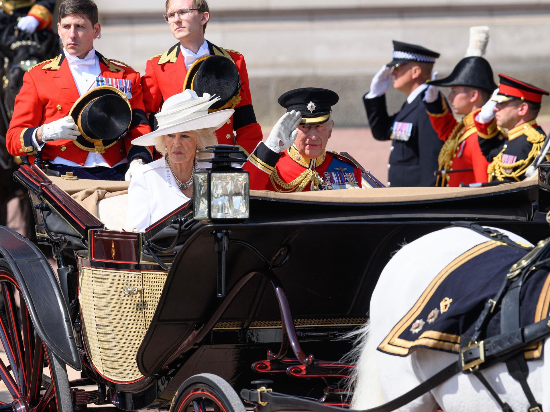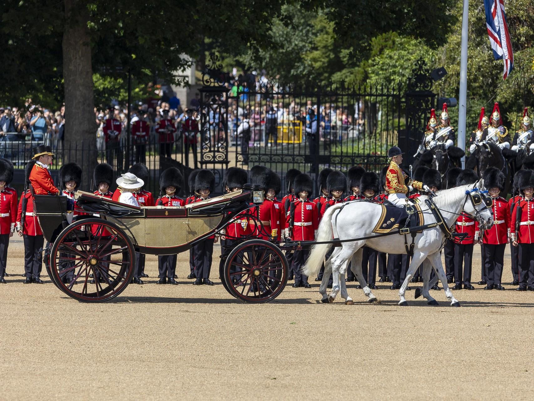 Trooping the Colours — это традиционный военный парад, отмечающий официальный день рождения монарха. С 1748 года парад проводится ежегодно в первые субботы июня, даже если настоящий день рождения короля или королевы отмечается в другой день. Это чрезвычайно важное мероприятие, на котором собирается каждый член королевской семьи. В этом году по приказу монарха вся семья надела черные траурные повязки в знак солидарности с жертвами катастрофы Air India.
