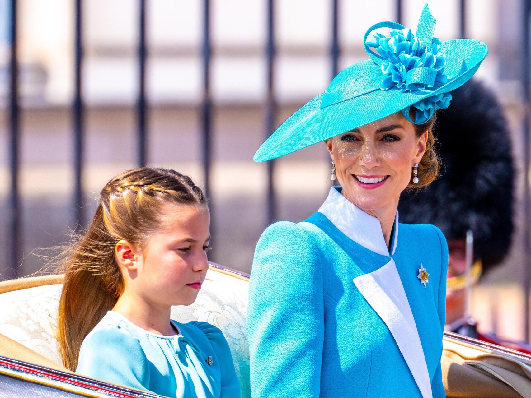 Принцесса Уэльская подобрала для себя и принцессы Шарлотты очаровательные наряды в голубых оттенках. Кейт надела небесно-голубое платье-пальто, а Шарлотта выглядела очаровательно в пастельно-голубом платье. Сыновья принцессы, Джордж и Луи тоже продемонстрировали изысканные наряды: оба были одеты в темно-синие пиджаки, белоснежные рубашки и красные галстуки. Пока Шарлотта вела себя, как подобает юной королевской особе, мальчики все время щурились от солнца, закрывали глаза и улыбались публике.