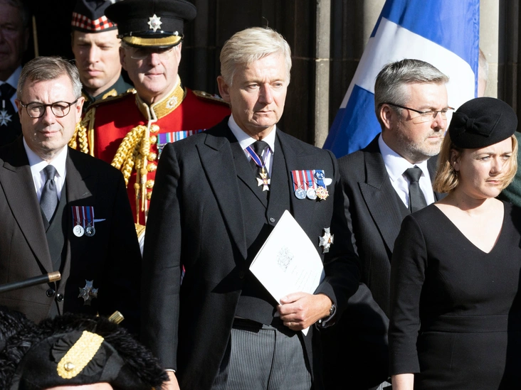 Питер Сент-Клер-Эрскин — 7-й граф Росслин. Ранее он занимал должность хозяина дома в Кларенс-Хаусе, который был официальной резиденцией Чарльза до восшествия на престол. Ему было предложено продолжить свою работу в Букингемском дворце при Карле и после того, как он стал монархом. Работа Сент-Клер-Эрскина как хозяина дома состоит в том, чтобы обеспечить как можно более тщательно устроенную общественную жизнь Карла и Камиллы. Выпускник Итона, он работает на королевскую чету с 2014 года, а до этого в течение 10 лет возглавлял службу защиты королевской семьи в столичной полиции.