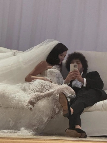 После церемонии Бенни Бланко опубликовал серию «закулисных» фотографий с торжества. На одном из кадров как раз можно рассмотреть кольца вблизи. На других же снимках он позирует вместе с невестой — в этот особенный день Селена была в белом платье Ralph Lauren. К своему посту жених также добавил трогательную подпись: «Я женился на настоящей принцессе Disney» (читайте также: Почему Селена Гомес выбрала «неидеального» Бенни Бланко — и сорвала джекпот).