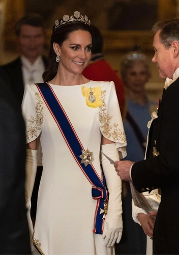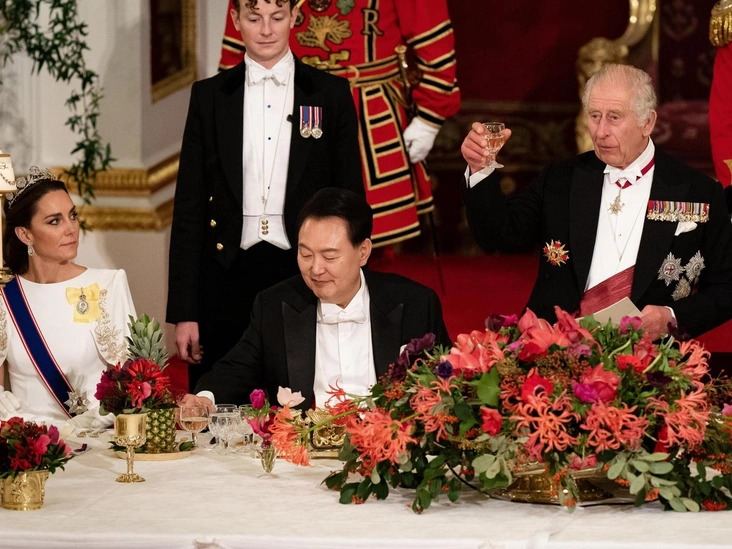Эксперты БКС полагали, что когда Карл станет королем, многое в имидже членов британской семьи изменится. И одно из доказательств мы увидели на банкете в честь президента и первой леди Южной Кореи — Кейт Миддлтон, обычно верная тиаре «Узелки любви», надела «Стратморские розы» (и стала первой, кто сделал это за 97 лет).