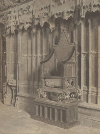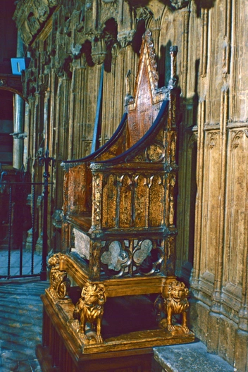 Кресло изготовлено из дуба, украшено цветным стеклом, позолочено и расписано мастером Вальтером, главным живописцем короля. На задней его части когда-то был изображен король — то ли Эдуард Исповедник, то ли Эдуард I, ноги которого опирались на богато вырезанного льва. Поэтому он называется «Трон Эдуарда». Считается, что этот предмет был изготовлен около 1300 года для короля Эдуарда I, а в 2010 году был проведен крупный проект по стабилизации всей позолоты. Сейчас трон проходит проверку каждые шесть месяцев.