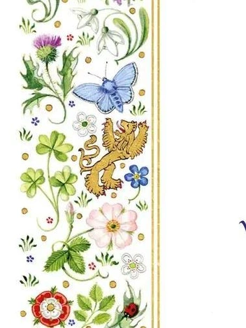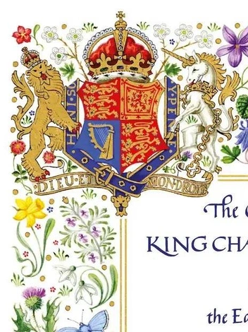 Другие цветы украшают внешний край приглашения, воссоздавая британский луг с полевыми цветами, и все они были нарисованы группами по три, чтобы показать, что король — третий монарх, носящий имя Карл. На лугу растут «ландыши, васильки, земляника, шиповник, колокольчики и веточка розмарина на память», говорится в пресс-релизе. Васильки, земляника, шиповник и колокольчики ассоциируются с любовью, а ландыш был любимым цветком Елизаветы II.