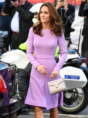 Кейт впервые появилась на публике с аксессуаром Aspinal of London еще в 2018 году, и это была модель Midi Mayfair стоимостью 595 фунтов стерлингов. В настоящее время сумка доступна в 17 различных цветовых решениях, а у Кэтрин были крокодиловые варианты в черном и в сиреневом исполнении. Оба раза герцогиня носила сумки без ремешка.