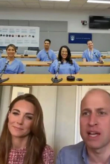 Это была очередна онлайн-встреча из норфолкского поместья Анмер-Холл, где Кембриджские провели весь период карантина. Принц Уильям выразил надежду на то, что в скором времени они смогут посетить больницу лично, в то время как его жена призналась, что «с огромным восхищением» относится ко «всему, что делают» медицинские сотрудники, и поинтересовалась их здоровьем.