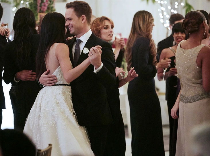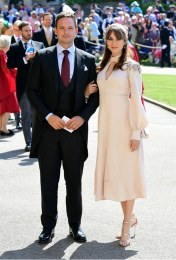 Патрик Джей Адамс был приглашен и на вторую свадьбе коллеги. На этот раз на церемонию бракосочетания он прибыл со своей новоиспеченной супругой, американкой Тройэн Беллисарио. Интересно, что экранные герои Маркл и Адамса поженились за несколько месяцев до этого.