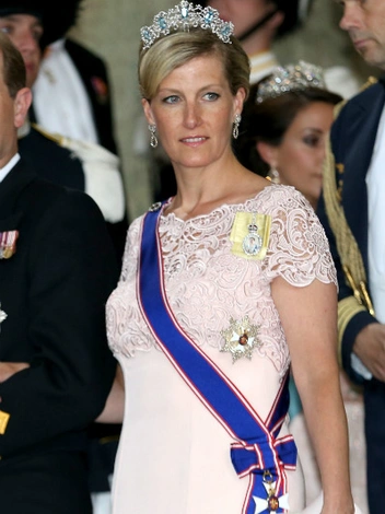 Очевидным выбором для дебюта леди Луизы Виндзор могла бы стать тиара Anthemion, в которой ее мать выходила замуж. Софи Рис-Джонс носила украшение «Пальметта» в 1999 году, когда она выходила замуж за младшего сына королевы принца Эдварда. И это тоже был ее дебют в тиаре. Это драгоценность с богатой историей — по одной из версий, украшение было составлено из фрагментов других драгоценностей, в том числе ювелирных изделий, принадлежавших королеве Виктории (например, диадемы Regal Circlet). Название «Пальметта» получила из-за своих «веерных лепестков» в древнегреческом стиле.