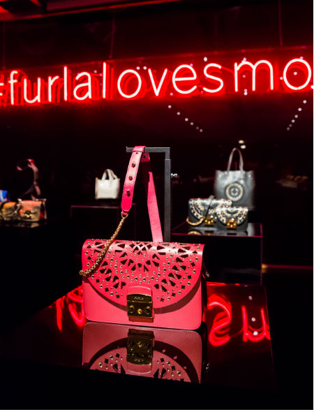 На входе гостей встречала неоновая инсталляция с официальным хештегом вечера #furlalovesmoscow. А в зале были представлены коллекции знаковых сумок Furla. На ужине гостям подавали черную икру Gorka Caviar с картофельным пюре, филе сибаса с лисичками и зеленой спаржей, а ещё пюре из сельдерея и равиоли из камчатского краба.