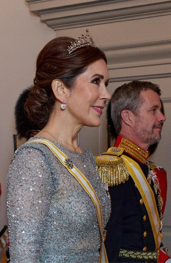 На банкет в честь испанских монархов принцесса надела одну из своих любимых тиар, которая датируется примерно 1900 годом. По данным источников, принцесса купила ее в 2012 году на старейшем аукционе в мире Sotheby's, вместе с бриллиантовыми серьгами. Что интересно — это тиара-трансформер (она превращается в ожерелье). И Мэри Датская с момента покупки носила ее в двух вариантах. Поклонники также отметили наряд принцессы — голубое сверкающее платье и клатч в тон (читайте также: Всегда безупречная принцесса: секреты красоты «датской Кейт Миддлтон»).