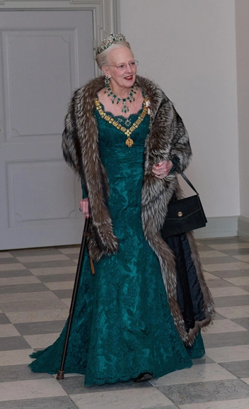 Хозяйка вечера, действующая королева Дании Маргрете, вышла в темно-зеленом total look. Изумрудная тиара, а также серьги, брошь и ожерелье, несут вековую историю. В 1840 году их заказал король Дании Кристиан VIII для своей супруги, королевы Каролины Амалии (читайте также: Самые роскошные изумрудные тиары королевских династий). Украшениям вторил наряд монаршей особы — изумрудное платье из шелка и кружева в пол. Эксперты по стилю подчеркнули — любовь королевы к красному так и не угасла. На некоторых мероприятиях она выходит в красных платьях — но на этот раз это была алая помада и маникюр в тон.