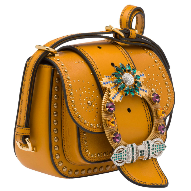 Впервые эта сумка, украшенная кристаллами Swarovski, была представлена на показе Miu Miu Pre-fall’16. Позже она снова появилась на показе осень-зима 2016.